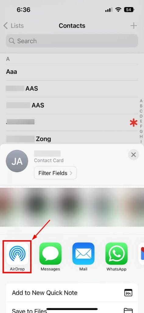 2. 使用AirDrop传输联系人