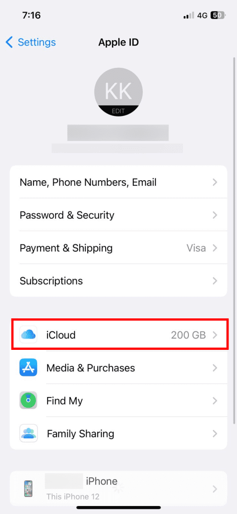 - 单击您的苹果ID并选择左上角iCloud。