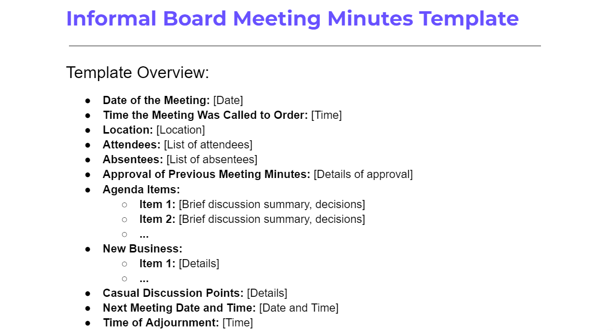 下载 .docx (Word) 文件形式的非正式董事会会议纪要模板。
