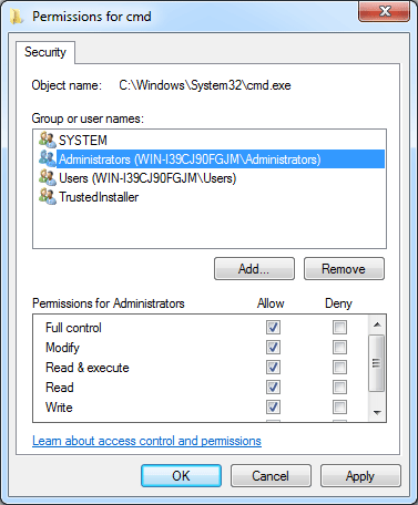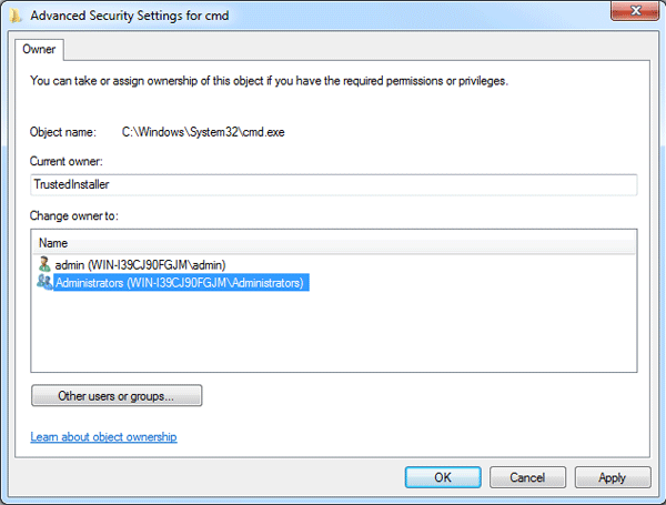 - 单击“确定”保存更改。该文件或文件夹现在属于您,具有完全控制权限。