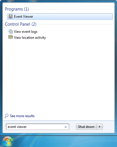要启动事件查看器,请单击“开始”,然后键入事件查看器并按 Enter 键。在 Windows 8 中,您可以按快捷键 Windows + W 并搜索事件查看器小程序。