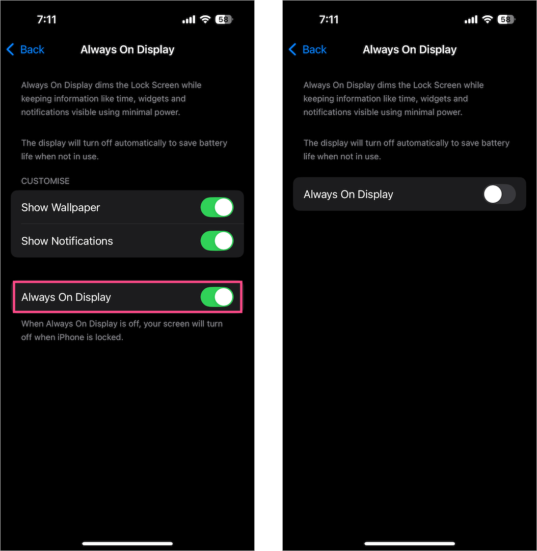 如果您觉得 AOD 很麻烦或发现它更快地耗尽电池电量,您可能需要在 iPhone 16 Pro 上将其关闭。幸运的是,iOS 包含一个设置来自定义或完全禁用常亮显示。