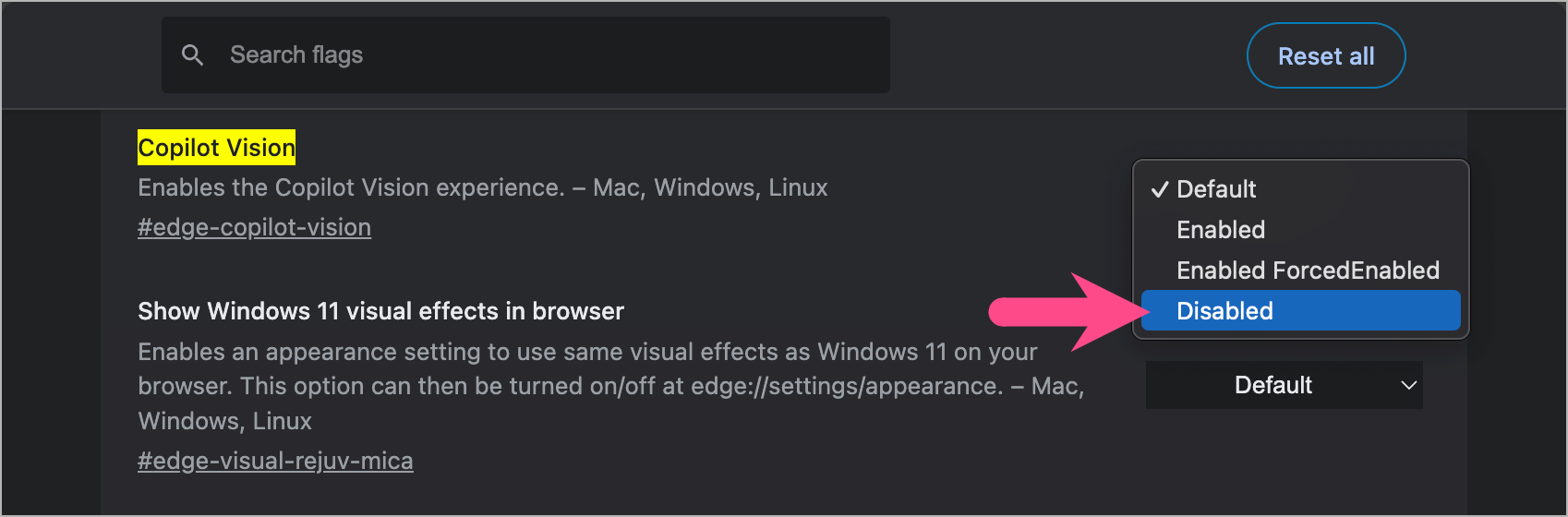 方法 3:使用 edge://flags/ 禁用副驾驶模式