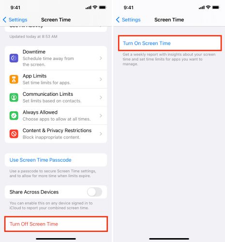 这个想法很简单:关闭 iPhone 上的屏幕时间将禁用所有停机时间限制。是的,您随时可以稍后重新打开“屏幕时间”。