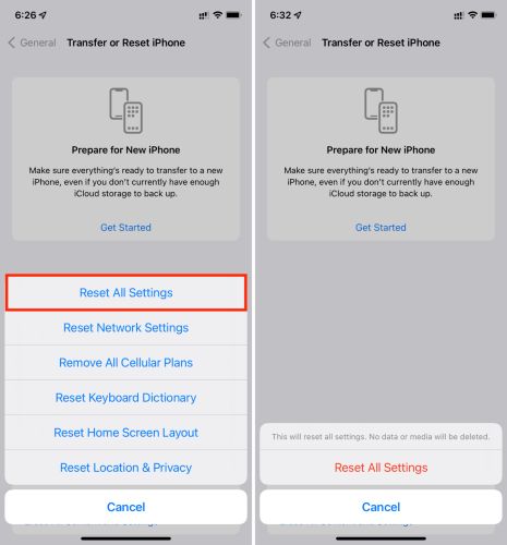 这还会将 iPhone 的 Wi-Fi、蓝牙、VPN 和网络设置恢复为出厂默认设置。但是,它不会删除您的照片、应用程序或个人数据。
