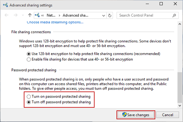 密码保护共享是一项 Windows 高级共享设置,它限制只有拥有您计算机帐户的用户才能访问共享内容。如果您想与网络上的其他人共享内容,您应该关闭密码保护共享。