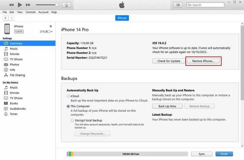 iTunes通过还原设备从iPhone中删除密码。这本质上意味着您的设备将返回到默认设置,并从其系统中清除所有数据和设置。