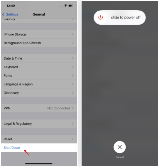 去设置>一般的>关闭,然后将滑块拖到屏幕上。