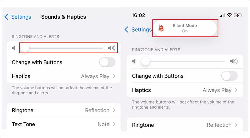 步骤3:使用“铃声和警报”滑块调节音量。向左拖动可减小音量或静音。