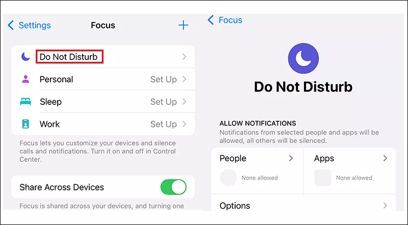 步骤3:您可以设置“请勿打扰”模式的预定时间或选择允许来自特定联系人的呼叫。这可确保您在特定时间或特定人员不会受到打扰。