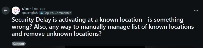 另一个问题是,即使您将该功能设置为仅在不熟悉的地点使用,iPhone 有时会误读您当前的设置,仍然会触发延迟。