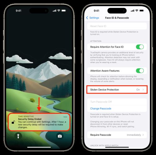 如果您的 iPhone 运行的是 iOS 17.3 或更高版本,则它配备了 Apple 新的被盗设备保护功能,其中包括安全延迟选项。您需要手动将其打开。激活后,会添加一个内置时间缓冲区,然后您才能调整敏感设置,例如更改 Apple ID 密码或设置新的 Face ID 或 Touch ID。