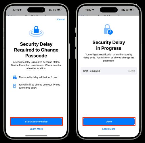 什么时候安全延迟在您的 iPhone 上处于活动状态,任何更改敏感安全设置的尝试都会触发强制一小时等待在特定条件下,取决于您的设置。