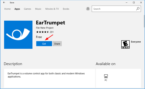 只需打开 Windows 应用商店应用程序并搜索,然后单击得到按钮下载并将其安装到本地 PC 上。