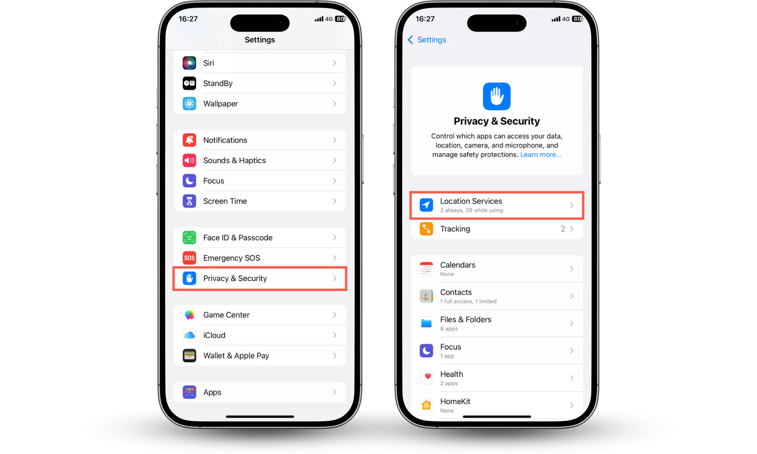 步骤 1-2:转至设置 > 隐私和安全 > 位置服务。