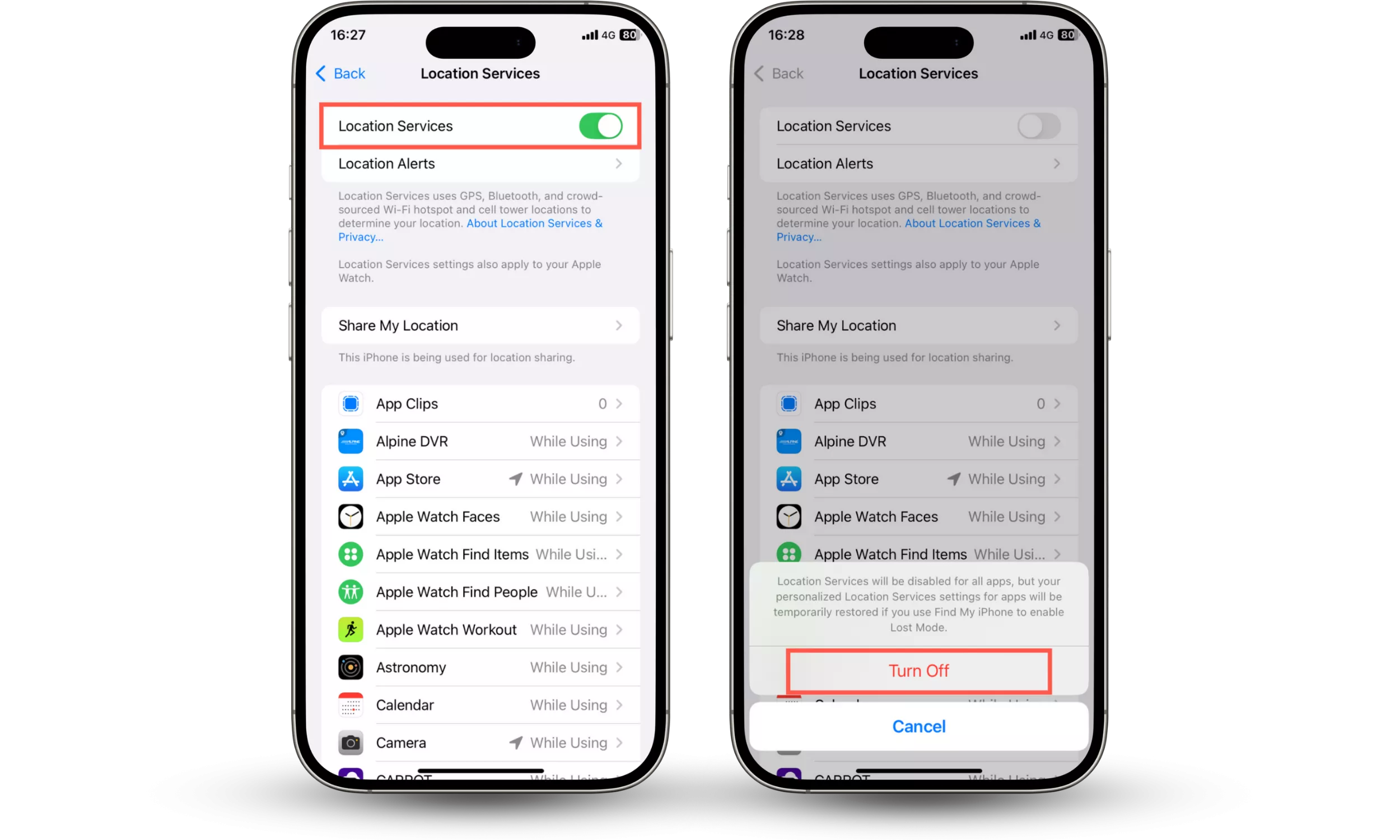 2. 关闭设备上的定位服务