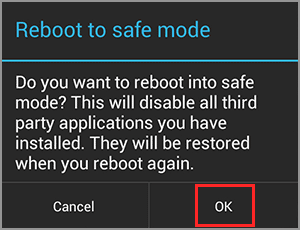 步骤2:tab and long保持关闭电源选项,直到“重新启动到安全模式“提示在电话屏幕上弹出,然后选项卡”好的”重新启动手机。