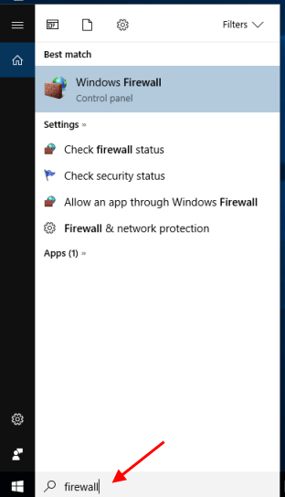 第 1 步:转到开始,然后输入防火墙,然后按进入。