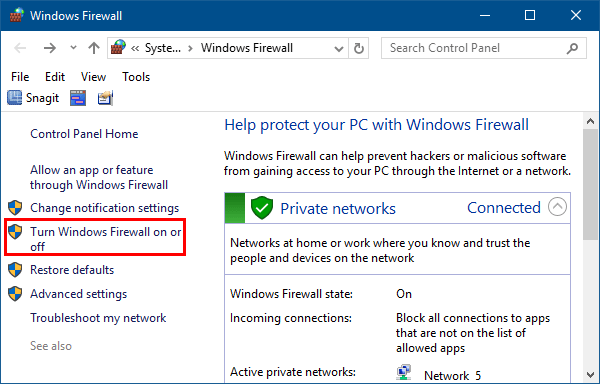 第 2 步:单击/点击打开或关闭 Windows 防火墙链接在左侧。