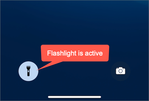 - 按住屏幕左下角的火炬按钮。您会感觉到触觉反馈,圆形按钮会变成白色,表示手电筒已打开。