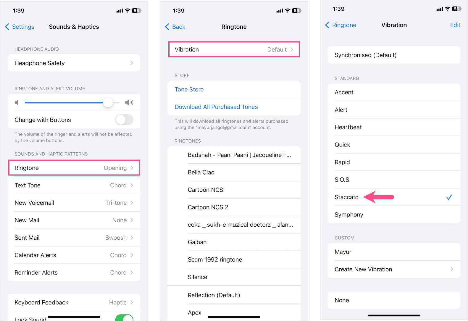 您可以类似地更改文本提示音、新语音邮件、日历提醒等的振动模式。