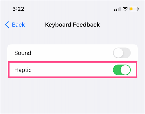 要启用键盘振动,请转至设置 > 声音和触觉。点击“键盘反馈”并打开“触觉”开关。