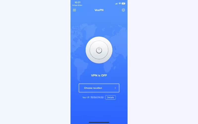 - 打开 VeePN 更改您的 IP 地址和虚拟位置。