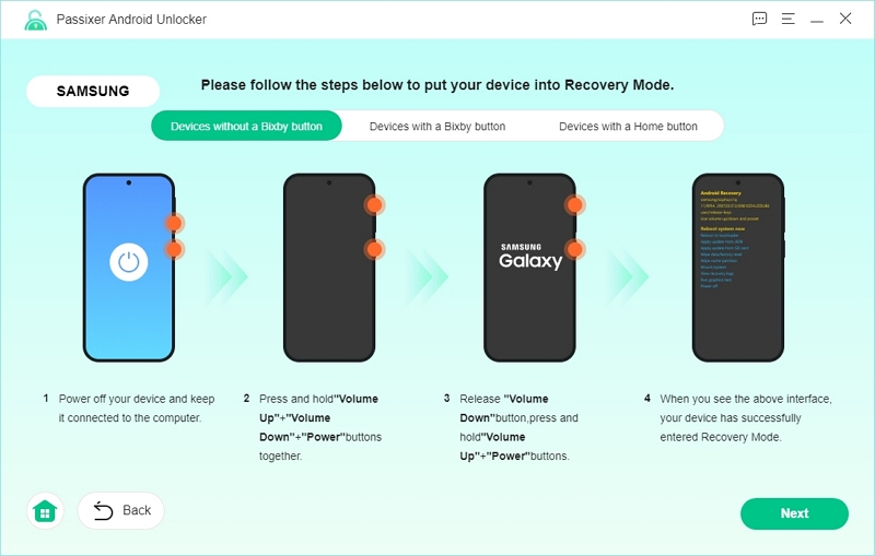 步骤3:按照软件的说明将手机置于恢复模式,然后单击下一个。