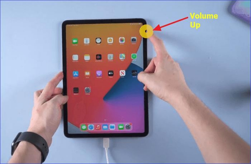 - 松开侧面按钮,然后按住音量按钮 5 秒。
