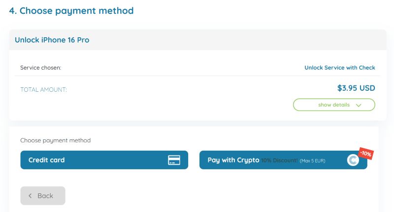 步骤 6。点击下一个并前往付款部分使用您的信用卡或加密货币支付费用。