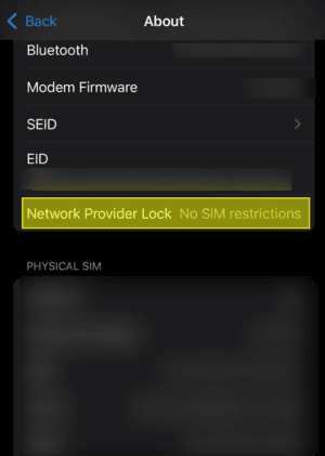 步骤 3.定位载体锁看看是否有无 SIM 卡限制在它旁边。如果有,则意味着您的 iPhone 已解锁,可以使用任何支持的网络。