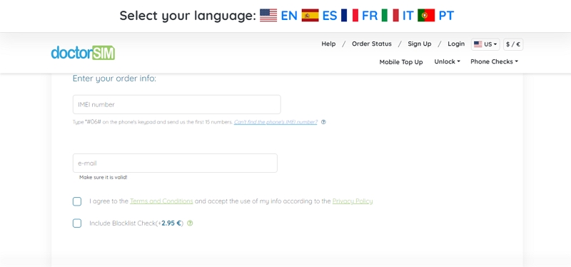DirectUnlocks 是另一项优秀的在线服务,它根据手机的 IMEI 号码提供沃达丰网络解锁代码。它允许您仅使用 IMEI 号码来解锁您的沃达丰 iPhone。此外,他们的方法是合法且永久的,不需要任何不必要的文书工作。以下是使用该平台的步骤: