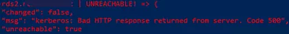 "msg": "kerberos: Bad HTTP response returned from server. Code 500", "unreachable": true