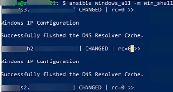 $ ansible windows_all -m win_shell -a "ipconfig /flushdns"