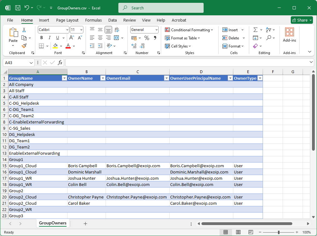 让我们将所有组(包括其所有者)导出到 CSV 文件。填写 CSV 路径4号线。