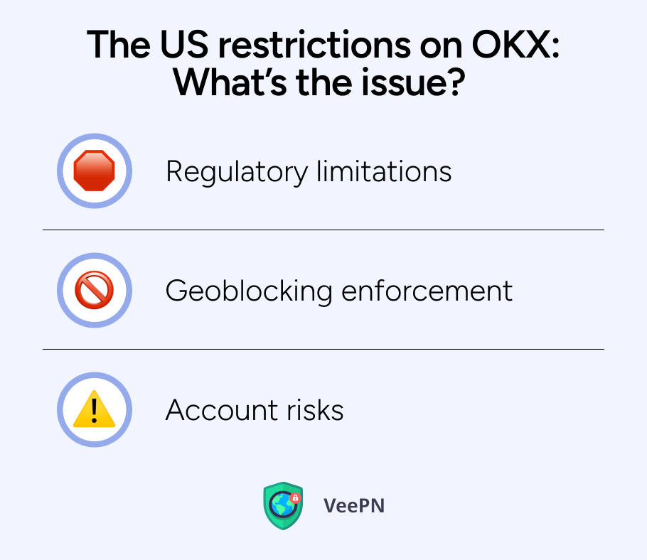 现在我们知道了 OKX 提供的价值,让我们来看看为什么美国用户面临访问障碍: