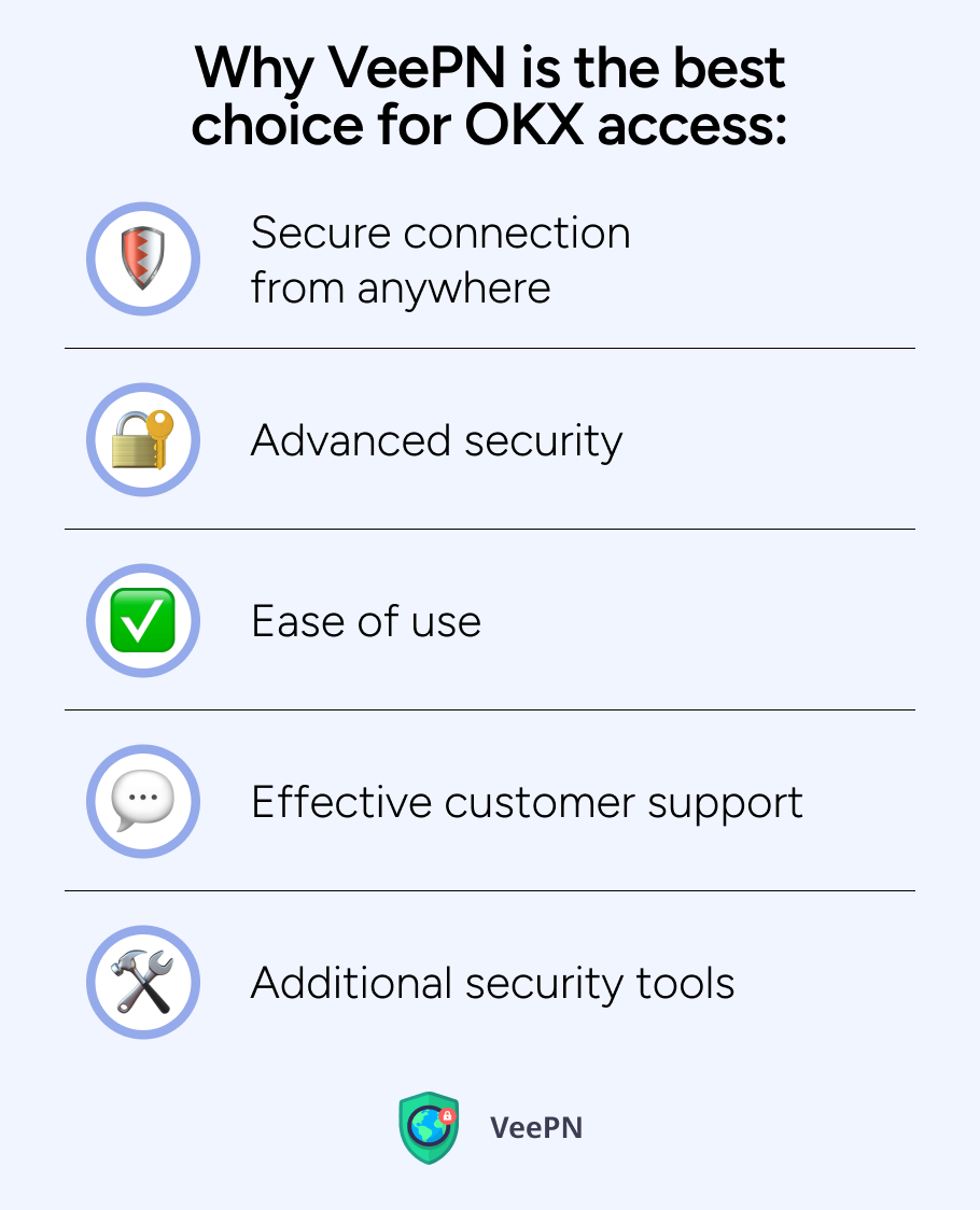 有许多可用的服务,但 VeePN 是安全可靠地访问加密货币的值得信赖且功能丰富的选择: