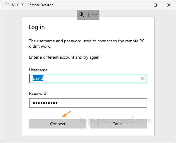 如果您想保存登录凭据,请单击“”旁边的加号 (+) 图标用户账户”字段。它会让您输入用于连接到远程计算机的用户名和密码。