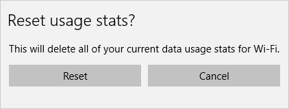 - 单击重置按钮确认您正在删除所选连接的所有网络数据使用统计信息。