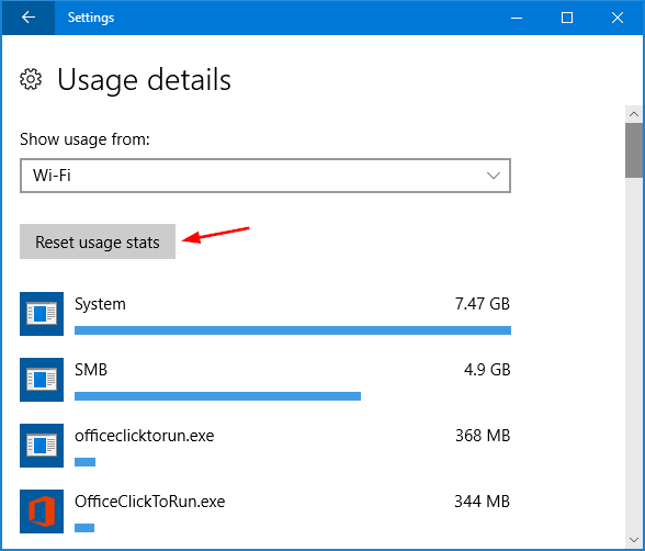 - 如果您想重置或清除数据使用情况,请单击重置使用统计数据按钮。