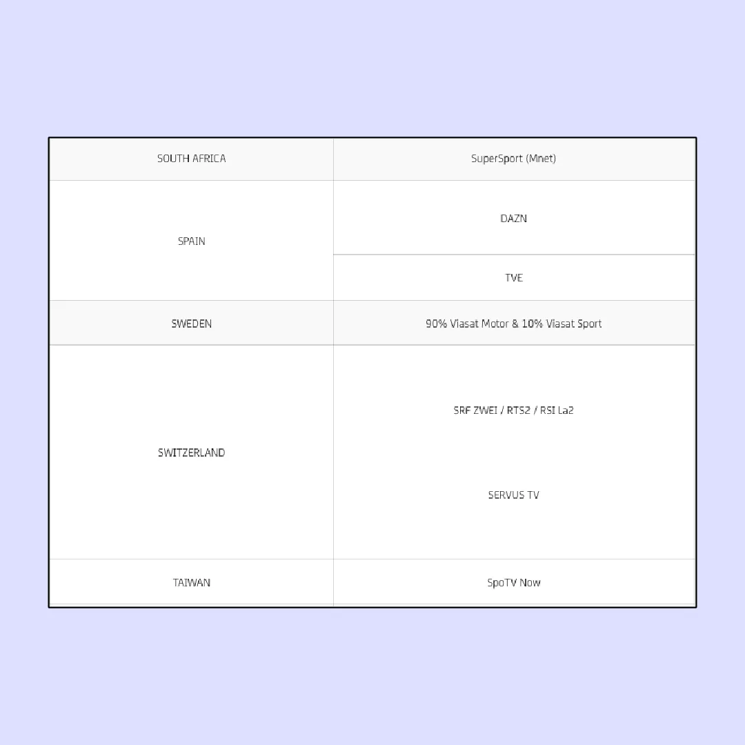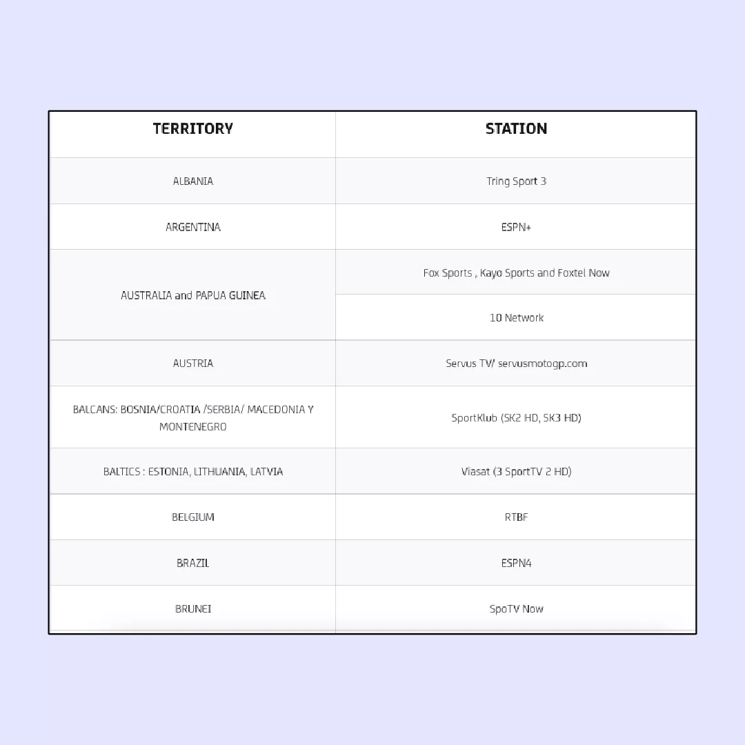 您可以根据您的位置和喜好通过各种平台观看 MotoGP 比赛。选项包括不同地区的 BT Sport、DAZN 和 NBC Sports 等官方广播公司。此外,MotoGP 还提供自己的订阅式流媒体服务 MotoGP VideoPass,为全球车迷提供现场报道、重播和独家内容。有关 MotoGP 流媒体平台的完整列表,请查看本文。