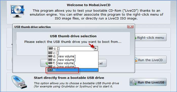 4. 从设备列表中选择您的 USB 闪存驱动器,您的计算机将从 USB 驱动器启动。