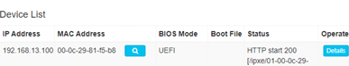 已从 PXE 服务器启动的计算机列表可在“设备列表”部分中找到。