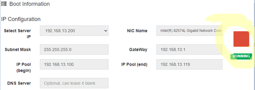 - 启动信息– 包含 iVentoy 服务器的主要设置:IP 地址、使用的 NIC、DHCP IP 地址范围、活动客户端设备列表