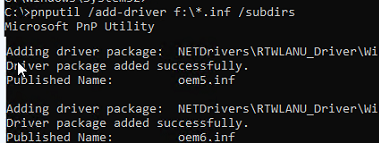 要在 Windows 中从闪存驱动器安装所有驱动程序(描述的 INF 文件),请运行以下命令: