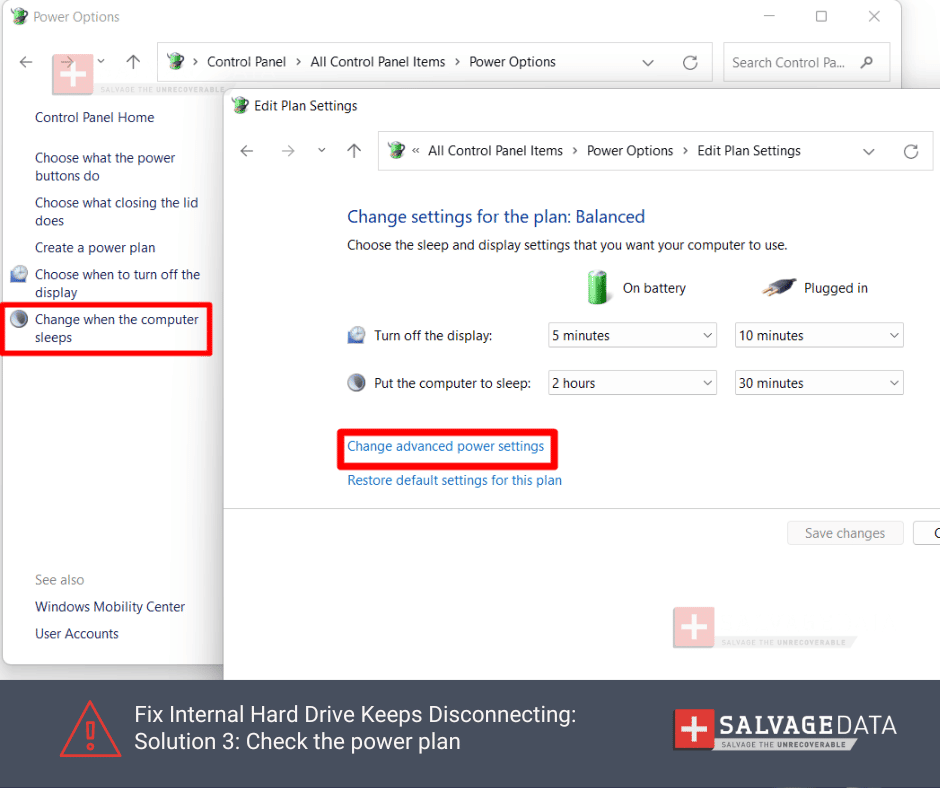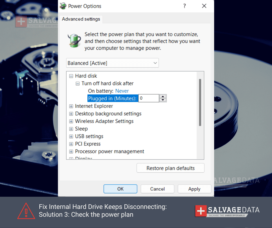 您必须解决最能接近内部HDD不断断开连接的原因的解决方案。例如,如果您从内部硬盘驱动器中听到异常的声音,则可能会造成物理损害。检查内部硬盘驱动器,以查看您是否必须更改它或与专业人员联系以帮助您。