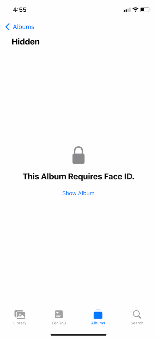 就是这样。打开隐藏相册,它会要求进行 Face ID、Touch ID 或密码身份验证才能显示相册内容。
