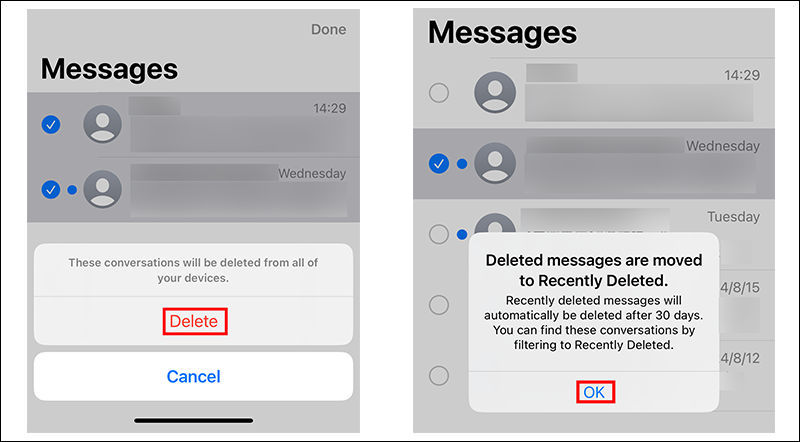 步骤3:轻敲 ”删除”以删除所有选定的对话。
