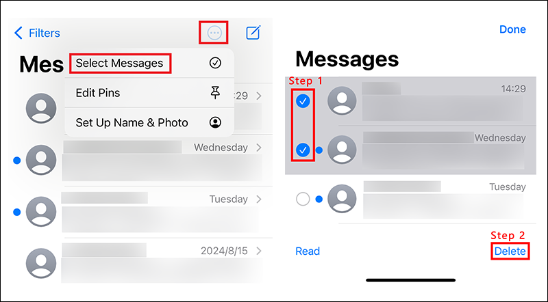 步骤3:您会在每条消息旁边看到一个圆圈。如果您只想删除一封邮件,请确保仅选中该邮件。到删除 iPhone 上的多条消息,刚刚查看了更多消息。