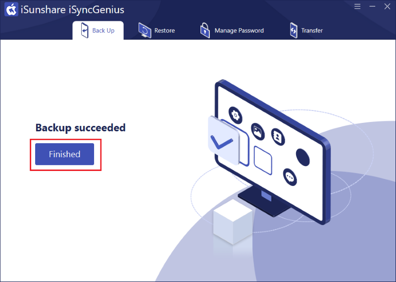 第4步:iPhone 备份成功后,单击完成的返回主界面。